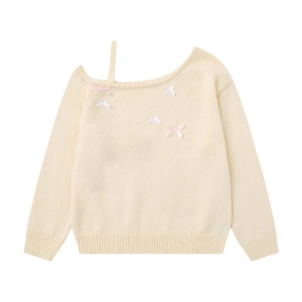 3D Bow Decorated Off-Shoulder Sweater