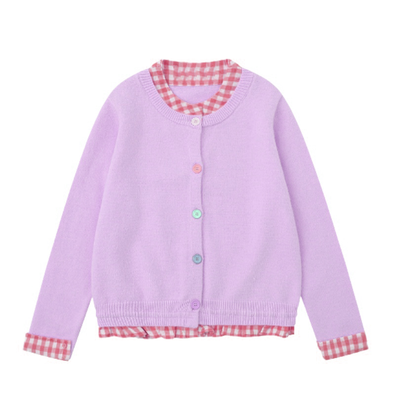Plaid Fake Two-Piece Cardigan Sweater Purple
